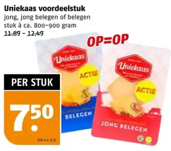 Uniekaas voordeelstuk jong belegen 800-900 gram 11.89-12.49 PER STUK