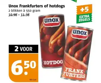 Unox Frankfurters of hotdogs 2 blikken à 550 gram, 2 VOOR 10.98 - 11.38
