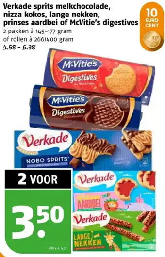 Koop Verkade sprits melkchocolade, nizza kokos, lange nekken, prinses aardbei of McVitie's digestives komende week met korting