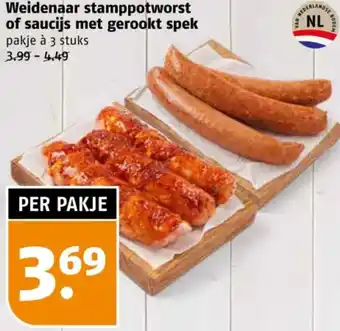 Weidenaar stamppotworst of saucijs met gerookt spek korting bij Poiesz