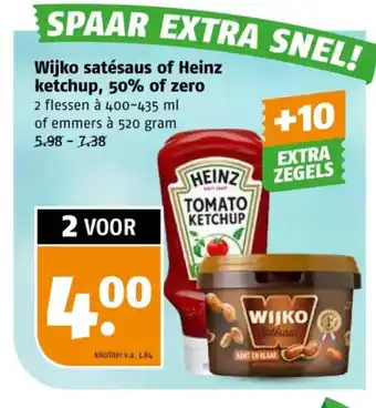 Wijko satésaus of Heinz ketchup, 50% of zero 520 g