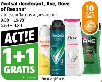 Zwitsal deodorant, Axe, Dove of Rexona korting bij Poiesz