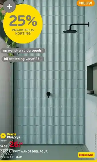 Deco Lingot Wandtegel - Aqua - 32x62,5 aanbieding bij Praxis – binnenkort verwacht