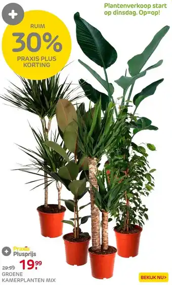De prijs van de Groene kamerplanten mix ⌀24cm ↕120cm kan ook teruggevonden worden hierboven op de pagina, samen met de datum van wanneer de aanbieding beschikbaar is. Ook kun je de prijzen in de huidige Praxis folder of op de Praxis website controleren. De aanbiedingen verzekeren je van het kopen van de Praxis producten voor de laagste prijs.
