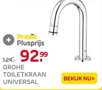 De prijs van de Grohe toiletkraan universal kan ook teruggevonden worden hierboven op de pagina, samen met de datum van wanneer de aanbieding beschikbaar is. Ook kun je de prijzen in de huidige Praxis folder of op de Praxis website controleren. De aanbiedingen verzekeren je van het kopen van de Praxis producten voor de laagste prijs.