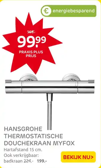 De prijs van de Hansgrohe Thermostatische Douchekraan Myfox kan ook teruggevonden worden hierboven op de pagina, samen met de datum van wanneer de aanbieding beschikbaar is. Ook kun je de prijzen in de huidige Praxis folder of op de Praxis website controleren. De aanbiedingen verzekeren je van het kopen van de Praxis producten voor de laagste prijs.