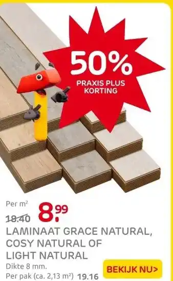Nu in de aanbieding bij Praxis: Laminaat Cosy Natural - Lente Eik✅ Actie geldig van 16-02 t/m 22-02.