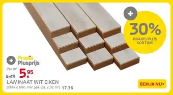 De prijs van de Laminaat wit eiken kan ook teruggevonden worden hierboven op de pagina, samen met de datum van wanneer de aanbieding beschikbaar is. Ook kun je de prijzen in de huidige Praxis folder of op de Praxis website controleren. De aanbiedingen verzekeren je van het kopen van de Praxis producten voor de laagste prijs.