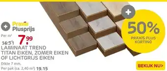 Nu in de aanbieding bij Praxis: Laminaat Zomer Eiken - 2-zijdige V-groef✅ Actie geldig van 26-01 t/m 1-02.