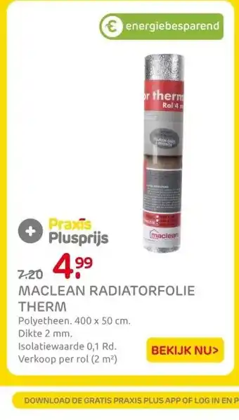 Nu in de aanbieding bij Praxis: MACLEAN RADIATORFOLIE THERM Polyetheen. 400 x 50 cm.✅ Actie geldig van 5-01 t/m 11-01.