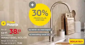 De prijs van de Nolita Wandtegel - Beige - 6,5x20 cm - kan ook teruggevonden worden hierboven op de pagina, samen met de datum van wanneer de aanbieding beschikbaar is. Ook kun je de prijzen in de huidige Praxis folder of op de Praxis website controleren. De aanbiedingen verzekeren je van het kopen van de Praxis producten voor de laagste prijs.
