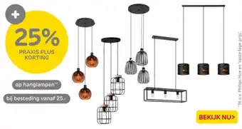 Profiteer nu van 25% korting op hanglampen bij Praxis. Deze aanbieding geldt bij besteding vanaf 25.- en is exclusief geldig op Philips Hue en 'vaste lage prijs' producten. Maak je interieur compleet met een prachtige hanglamp en bespaar tegelijkertijd geld. Met de Praxis Plus korting krijg je nog meer voordeel op je aankoop. Bekijk nu het assortiment en kies de perfecte hanglamp die past bij jouw stijl en budget. Of je nu op zoek bent naar een moderne, industriële of klassieke hanglamp, bij Praxis vind je het allemaal. Mis deze kans niet en geef je huis een nieuwe uitstraling met een mooie hanglamp. Shop nu online of in de winkel!