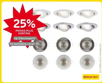 De prijs van de op inbouwspots kan ook teruggevonden worden hierboven op de pagina, samen met de datum van wanneer de aanbieding beschikbaar is. Ook kun je de prijzen in de huidige Praxis folder of op de Praxis website controleren. De aanbiedingen verzekeren je van het kopen van de Praxis producten voor de laagste prijs.