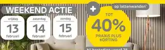 Praxis biedt naast de op lattenwanden een ruime collectie producten aan. Houd de wekelijkse Praxis folder in de gaten om de beste aanbiedingen en acties te vinden. Naast op lattenwanden, kunt u ook de volgende aanbiedingen vinden: op alle lattenwanden, ook op maatwerk, op alle lattenwanden ook op maatwerk & aanbieding 3.
