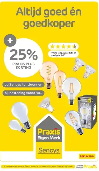 De prijs van de Op sencys lichtbronnen kan ook teruggevonden worden hierboven op de pagina, samen met de datum van wanneer de aanbieding beschikbaar is. Ook kun je de prijzen in de huidige Praxis folder of op de Praxis website controleren. De aanbiedingen verzekeren je van het kopen van de Praxis producten voor de laagste prijs.
