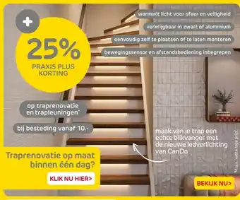 Praxis biedt naast de Op traprenovatie en trapleuningen een ruime collectie producten aan. Houd de wekelijkse Praxis folder in de gaten om de beste aanbiedingen en acties te vinden. Naast Op traprenovatie en trapleuningen, kunt u ook de volgende aanbiedingen vinden: Op Traprenovatie en trapleuningen, op Traprenovatie op maat & Op alle traprenovatie ook op maatwerk.