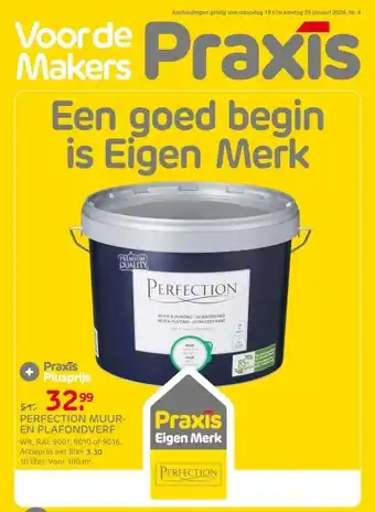 De prijs van de Perfection muur en plafondverf kan ook teruggevonden worden hierboven op de pagina, samen met de datum van wanneer de aanbieding beschikbaar is. Ook kun je de prijzen in de huidige Praxis folder of op de Praxis website controleren. De aanbiedingen verzekeren je van het kopen van de Praxis producten voor de laagste prijs.