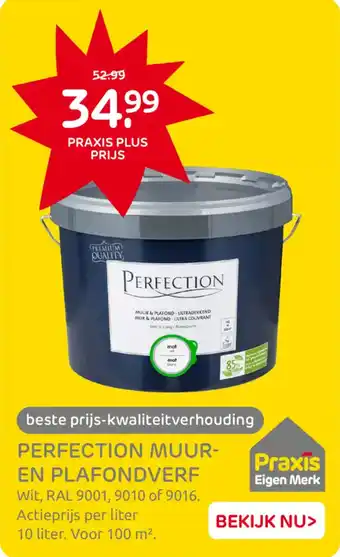 De prijs van de Perfection Muur en Plafondverf kan ook teruggevonden worden hierboven op de pagina, samen met de datum van wanneer de aanbieding beschikbaar is. Ook kun je de prijzen in de huidige Praxis folder of op de Praxis website controleren. De aanbiedingen verzekeren je van het kopen van de Praxis producten voor de laagste prijs.