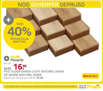 De prijs van de Pvc vloer garda licht naturel eiken of warm naturel eiken kan ook teruggevonden worden hierboven op de pagina, samen met de datum van wanneer de aanbieding beschikbaar is. Ook kun je de prijzen in de huidige Praxis folder of op de Praxis website controleren. De aanbiedingen verzekeren je van het kopen van de Praxis producten voor de laagste prijs.