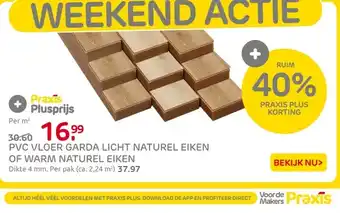 De prijs van de Pvc vloer garda licht naturel eiken of warm naturel eiken kan ook teruggevonden worden hierboven op de pagina, samen met de datum van wanneer de aanbieding beschikbaar is. Ook kun je de prijzen in de huidige Praxis folder of op de Praxis website controleren. De aanbiedingen verzekeren je van het kopen van de Praxis producten voor de laagste prijs.