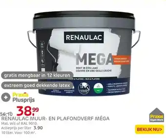 Nu in de aanbieding bij Praxis: Renaulac Méga Muurverf - Mat - Wit - 10L✅ Actie geldig van 26-01 t/m 1-02.
