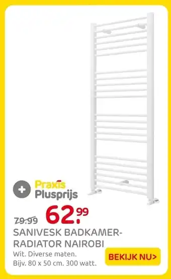 De prijs van de Sanivesk badkamer radiator nairobi kan ook teruggevonden worden hierboven op de pagina, samen met de datum van wanneer de aanbieding beschikbaar is. Ook kun je de prijzen in de huidige Praxis folder of op de Praxis website controleren. De aanbiedingen verzekeren je van het kopen van de Praxis producten voor de laagste prijs.