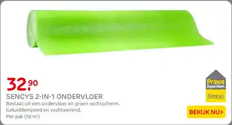 De prijs van de Sencys 2-in-1 Ondervloer kan ook teruggevonden worden hierboven op de pagina, samen met de datum van wanneer de aanbieding beschikbaar is. Ook kun je de prijzen in de huidige Praxis folder of op de Praxis website controleren. De aanbiedingen verzekeren je van het kopen van de Praxis producten voor de laagste prijs.