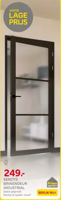 De prijs van de Sencys Binnendeur Industrial kan ook teruggevonden worden hierboven op de pagina, samen met de datum van wanneer de aanbieding beschikbaar is. Ook kun je de prijzen in de huidige Praxis folder of op de Praxis website controleren. De aanbiedingen verzekeren je van het kopen van de Praxis producten voor de laagste prijs.