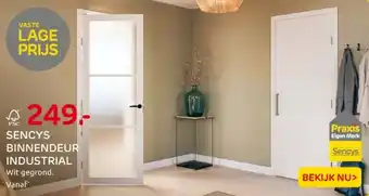 De prijs van de Sencys binnendeur industrial kan ook teruggevonden worden hierboven op de pagina, samen met de datum van wanneer de aanbieding beschikbaar is. Ook kun je de prijzen in de huidige Praxis folder of op de Praxis website controleren. De aanbiedingen verzekeren je van het kopen van de Praxis producten voor de laagste prijs.