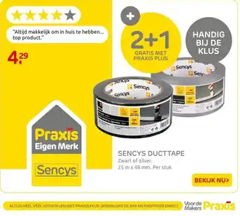 De prijs van de Sencys Duct tape - Zilver - 25m x 48mm kan ook teruggevonden worden hierboven op de pagina, samen met de datum van wanneer de aanbieding beschikbaar is. Ook kun je de prijzen in de huidige Praxis folder of op de Praxis website controleren. De aanbiedingen verzekeren je van het kopen van de Praxis producten voor de laagste prijs.