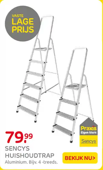 De prijs van de Sencys Huishoudtrap kan ook teruggevonden worden hierboven op de pagina, samen met de datum van wanneer de aanbieding beschikbaar is. Ook kun je de prijzen in de huidige Praxis folder of op de Praxis website controleren. De aanbiedingen verzekeren je van het kopen van de Praxis producten voor de laagste prijs.