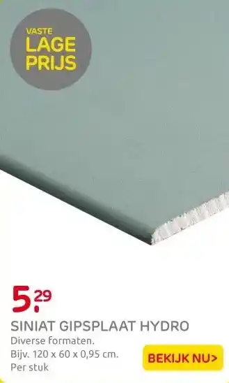 Koop Siniat Gipsplaat Hydro H2 - RK - 9,5mm - komende week met korting