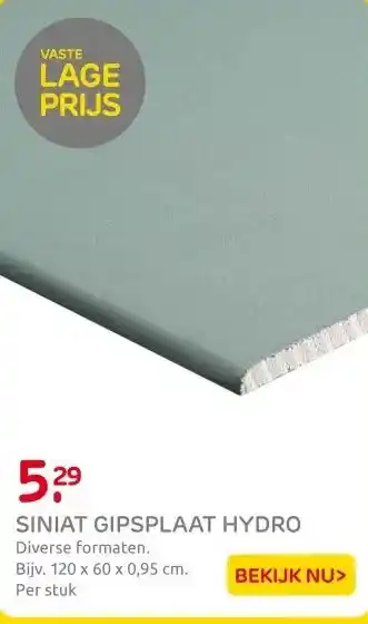 Koop Siniat Gipsplaat Hydro H2 - RK - 9,5mm - komende week met korting