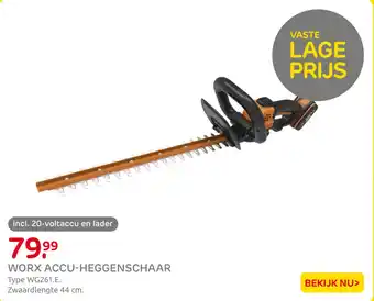 WORX ACCU-HEGGENSCHAAR incl. 20-voltaccu en lader voor vaste lage prijs van 79,99