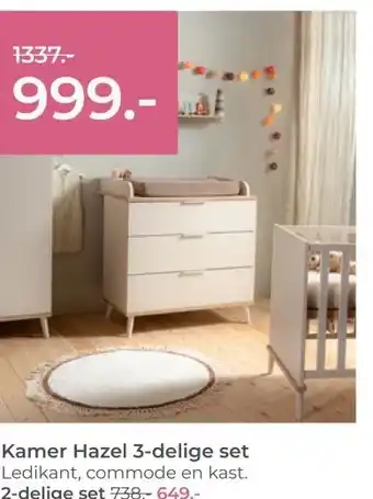 De prijs van de Kamer Hazel 3-delige set kan ook teruggevonden worden hierboven op de pagina, samen met de datum van wanneer de aanbieding beschikbaar is. Ook kun je de prijzen in de huidige Prenatal folder of op de Prenatal website controleren. De aanbiedingen verzekeren je van het kopen van de Prenatal producten voor de laagste prijs.