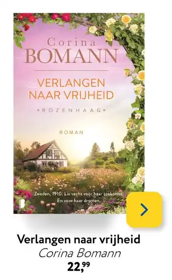 In de roman 'Verlangen naar vrijheid' van Corina Bomann, neemt Liv je mee naar Zweden in 1910. Liv vecht voor haar toekomst en voor haar dromen in een tijd waarin vrouwen nog weinig vrijheid hadden. Het verhaal speelt zich af bij de prachtige rozenhaag in Zweden, waar Liv haar verlangen naar vrijheid nastreeft. Het boek is een meeslepend verhaal over doorzettingsvermogen, liefde en de kracht van dromen. Voor slechts 22,99 kun je dit inspirerende boek van Corina Bomann in handen krijgen en je laten meevoeren naar een andere tijd en plaats. Laat je meeslepen door Liv's strijd en haar zoektocht naar vrijheid in een wereld vol beperkingen.