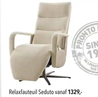 Nu in de aanbieding bij Pronto wonen: Relaxfauteuil Seduto✅ Actie geldig van 2-03 t/m 8-03.