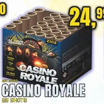 De aanbieding is verkrijgbaar in verschillende winkels, bekijk alle producten om de goedkoopste Casino royale te krijgen. Als je graag wilt kijken of het artikel met meer korting te koop is in een andere winkel, bekijk de categorie 'Vuurwerk'. Wellicht vind je deze aanbiedingen ook interessant: Ornament casino, Ornament casino per stuk & Rougié, Montfort of Foie Royale.
