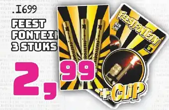 De prijs van de I699 feest fontein kan ook teruggevonden worden hierboven op de pagina, samen met de datum van wanneer de aanbieding beschikbaar is. Ook kun je de prijzen in de huidige Quartel Vuurwerk folder of op de Quartel Vuurwerk website controleren. De aanbiedingen verzekeren je van het kopen van de Quartel Vuurwerk producten voor de laagste prijs.