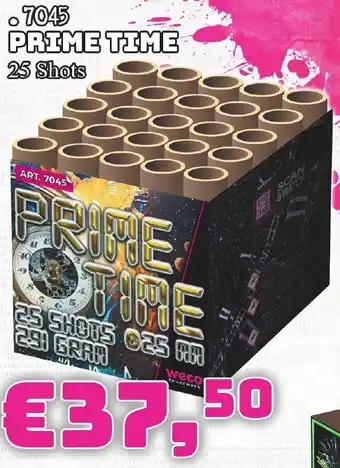 De aanbieding is verkrijgbaar in verschillende winkels, bekijk alle producten om de goedkoopste PRIME TIME te krijgen. Als je graag wilt kijken of het artikel met meer korting te koop is in een andere winkel, bekijk de categorie 'Vuurwerk'. Wellicht vind je deze aanbiedingen ook interessant: Take Time, Take Time & Take Time.