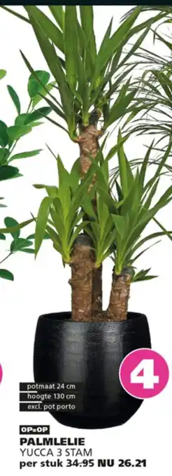Palmlelie Yucca 3 stam 130 cm potmaat 24 cm OP=OP