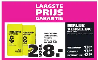 De prijs van de Potgrond universeel kan ook teruggevonden worden hierboven op de pagina, samen met de datum van wanneer de aanbieding beschikbaar is. Ook kun je de prijzen in de huidige Ranzijn folder of op de Ranzijn website controleren. De aanbiedingen verzekeren je van het kopen van de Ranzijn producten voor de laagste prijs.