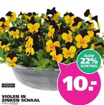 Nu in de aanbieding bij Ranzijn: VIOLEN IN ZINKEN SCHAAL VIOLA CORNUTA✅ Actie geldig van 8-03 t/m 21-03.