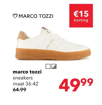 De prijs van de Marco Tozzi dames sneakers wit kan ook teruggevonden worden hierboven op de pagina, samen met de datum van wanneer de aanbieding beschikbaar is. Ook kun je de prijzen in de huidige Scapino folder of op de Scapino website controleren. De aanbiedingen verzekeren je van het kopen van de Scapino producten voor de laagste prijs.