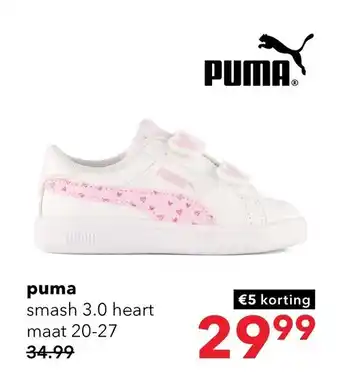 De prijs van de Puma smash 3.0 heart kan ook teruggevonden worden hierboven op de pagina, samen met de datum van wanneer de aanbieding beschikbaar is. Ook kun je de prijzen in de huidige Scapino folder of op de Scapino website controleren. De aanbiedingen verzekeren je van het kopen van de Scapino producten voor de laagste prijs.
