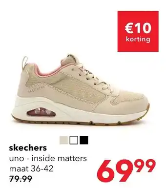 Scapino biedt naast de Skechers uno inside matters een ruime collectie producten aan. Houd de wekelijkse Scapino folder in de gaten om de beste aanbiedingen en acties te vinden. Naast Skechers uno inside matters, kunt u ook de volgende aanbiedingen vinden: Skechers uno, Skechers uno lite & Skechers uno lite.