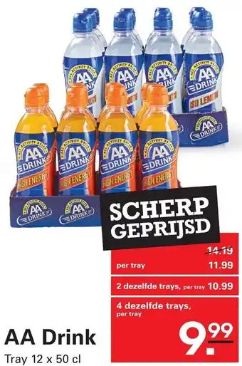 De AA Drink is momenteel met korting verkrijgbaar bij Sligro. Hier vind je alle details over prijs, geldigheidsduur en actievoorwaarden. Vergeet niet om ook andere aanbiedingen en deals voor AA Drink te bekijken zodat je zeker weet dat je de beste prijs betaalt. De kortingsactie loopt van 19-02-2026 tot 09-03-2026. Is de actie inmiddels verlopen? Geen zorgen, vergelijk dan soortgelijke aanbiedingen of volg de productcategorie voor toekomstige prijsverlagingen. Zo koop je altijd met voordeel.Veelgestelde vragen over AA Drink
