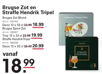 De aanbieding is verkrijgbaar in verschillende winkels, bekijk alle producten om de goedkoopste Brugse Zot en Straffe Hendrik Tripel te krijgen. Als je graag wilt kijken of het artikel met meer korting te koop is in een andere winkel, bekijk de categorie 'Groothandel'. Wellicht vind je deze aanbiedingen ook interessant: Brugse Zot Blond, Leffe Tripel & Karmeliet Tripel.