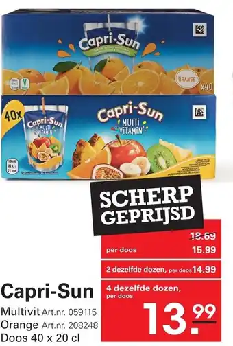 De aanbieding is verkrijgbaar in verschillende winkels, bekijk alle producten om de goedkoopste Capri-Sun te krijgen. Als je graag wilt kijken of het artikel met meer korting te koop is in een andere winkel, bekijk de categorie 'Groothandel'. Wellicht vind je deze aanbiedingen ook interessant: Capri-Sun, Capri-Sun & Capri-Sun.