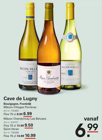 De prijs van de Cave de Lugny kan ook teruggevonden worden hierboven op de pagina, samen met de datum van wanneer de aanbieding beschikbaar is. Ook kun je de prijzen in de huidige Sligro folder of op de Sligro website controleren. De aanbiedingen verzekeren je van het kopen van de Sligro producten voor de laagste prijs.